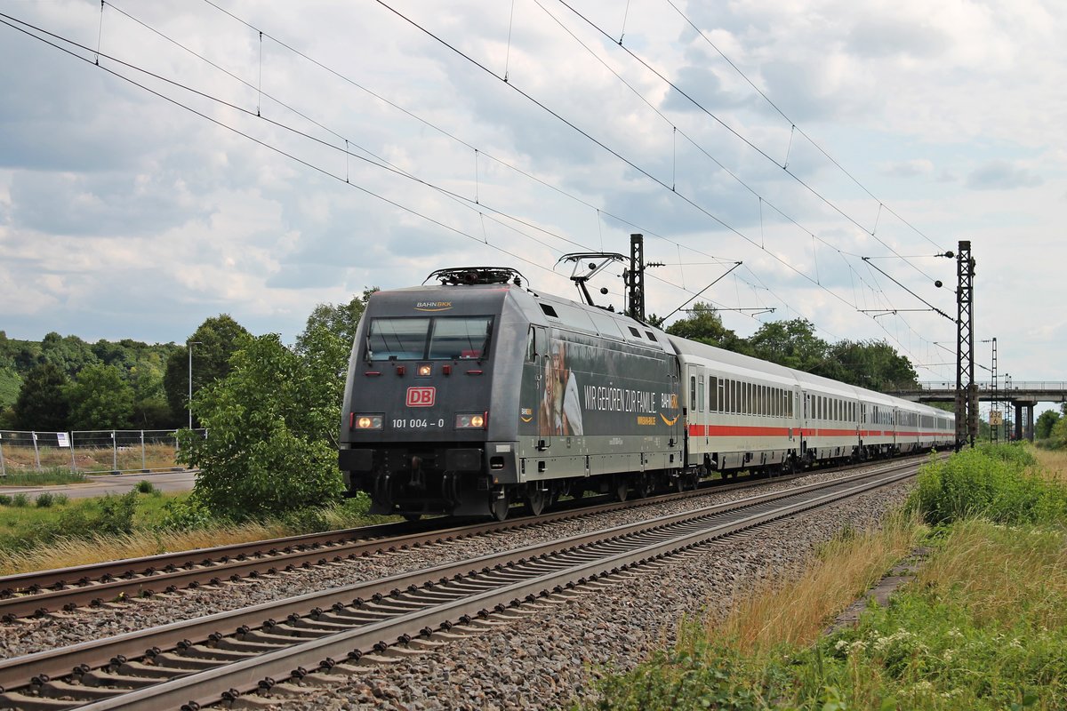 Am Nachmittag des 20.07.2017 hatte 101 004-0 "BahnBKK" die Aufgabe, den EC 206 (Zürich HB - Frankfurt (Main) Hbf) von Basel SBB bis zum Zielbahnhof zu bespannen, als sie bei Buggingen durchs Rheintal in Richtung Freiburg (Breisgau) fuhr.