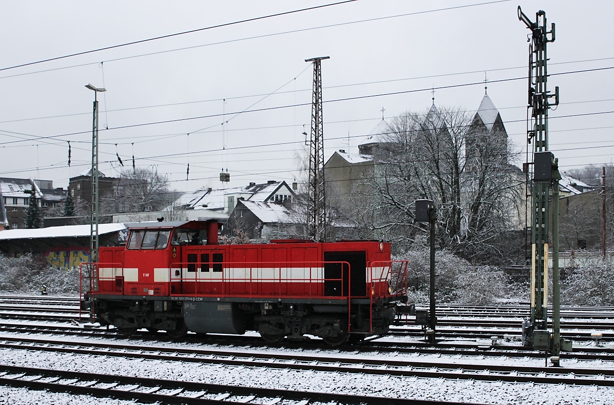 Auf den ersten Blick ist nicht zu erkennen, dass es sich bei der V 149 von Captrain, die am 30.01.2019 in Düsseldorf-Rath mit der St. Josef-Kirche im Hintergrund rangiert, um eine ehemalige DB-V 100 handelt. Die Lok hat eine abwechslungsreichen Lebenslauf: Krauss-Maffei (Fabrik-Nr. 18870) lieferte sie 1962 als V 100 1274 an die DB, die Abnahme erfolgte am 08.03.1962. Am 01.01.1968 wurde sie in 211 274-6 umgezeichnet und rund 20 Jahre später, am 30.06.1988, ausgemustert. Über die Firma Layritz gelangte sie zur ÖBB, die sie als 2048 008-3 am 15.11.1991 in Betrieb nahm. Nach einem Unfall wurde sie am 01.11.2000 ausgemustert und gelangte 2003 zu On Rail. Im gleichen Jahr wurde sie von Vossloh Locomotives unter Verwendung von Rahmen und Drehgestellen zur DH 1004/8 umgebaut. 2006 kam sie zur Westerwaldbahn. Seit 01.12.2017 ist sie für Captrain unterwegs.