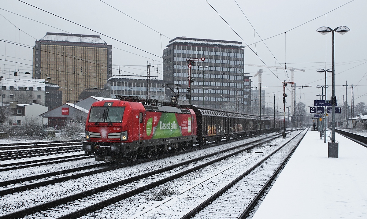 Lok 186 445-3 durchfährt den badischen Bahnhof. Die Aufnahme stammt vom 23.01.2019.
