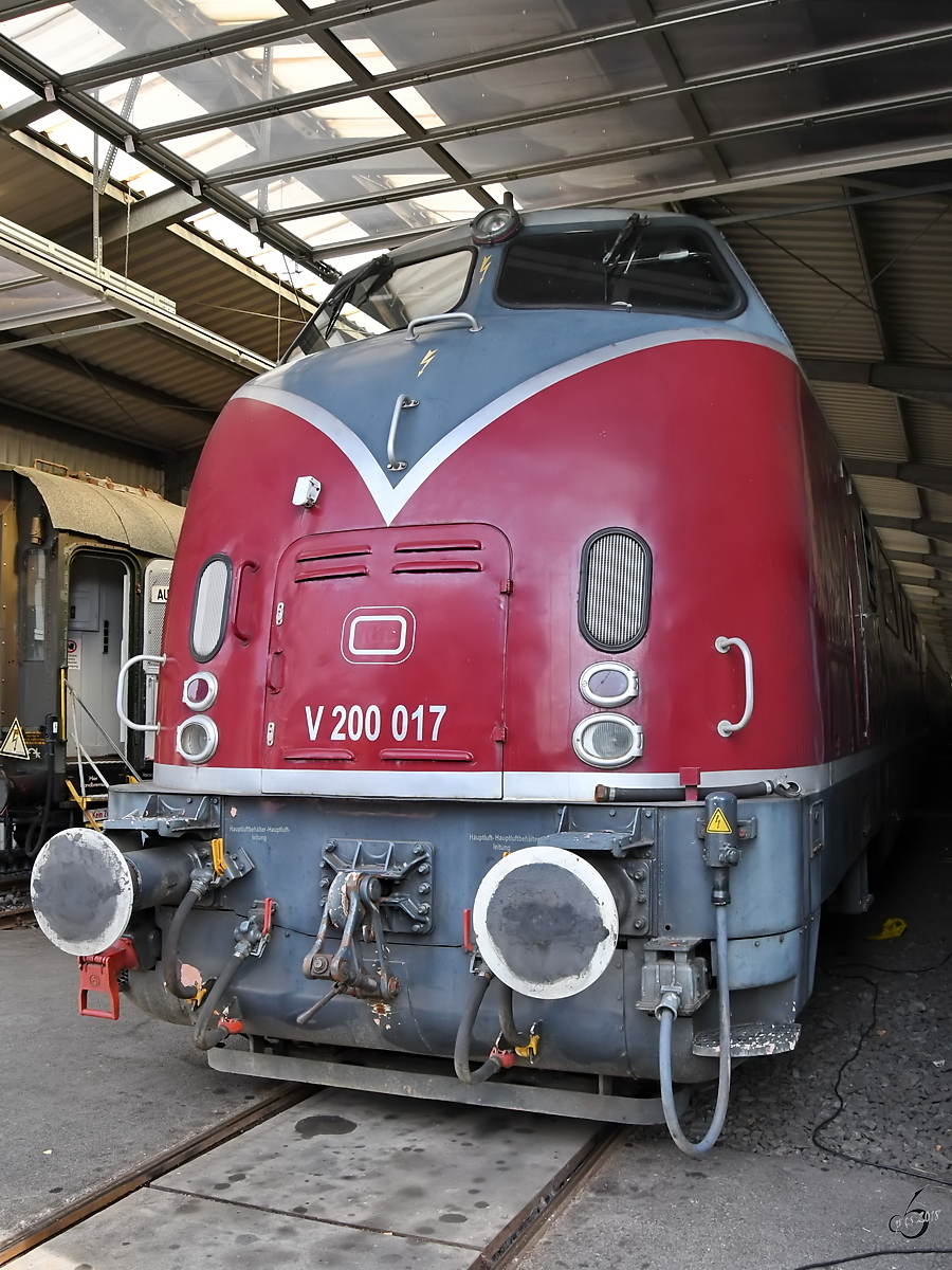 Die Diesellokomotive V 200 017 Mitte September 2018 im Eisenbahnmuseum Bochum-Dahlhausen.