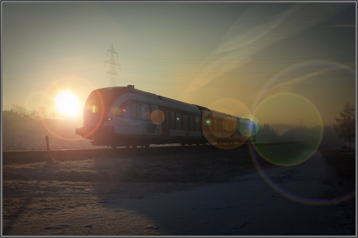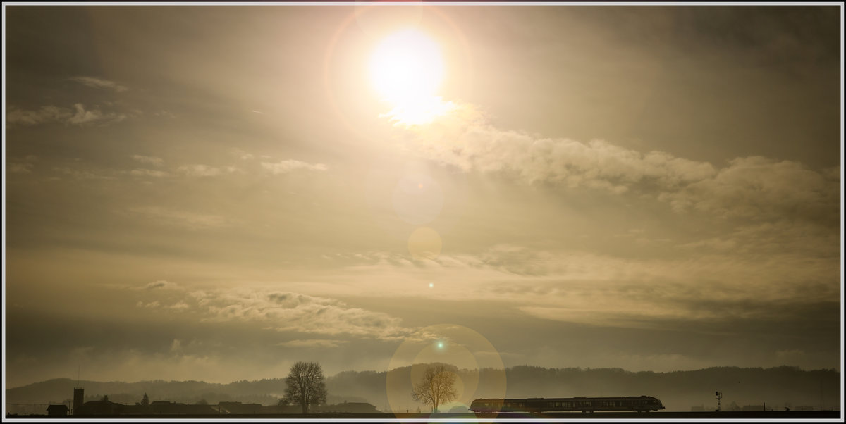 Bei Biberist auf der Rückfahrt als Lokzug im Gegenlicht.