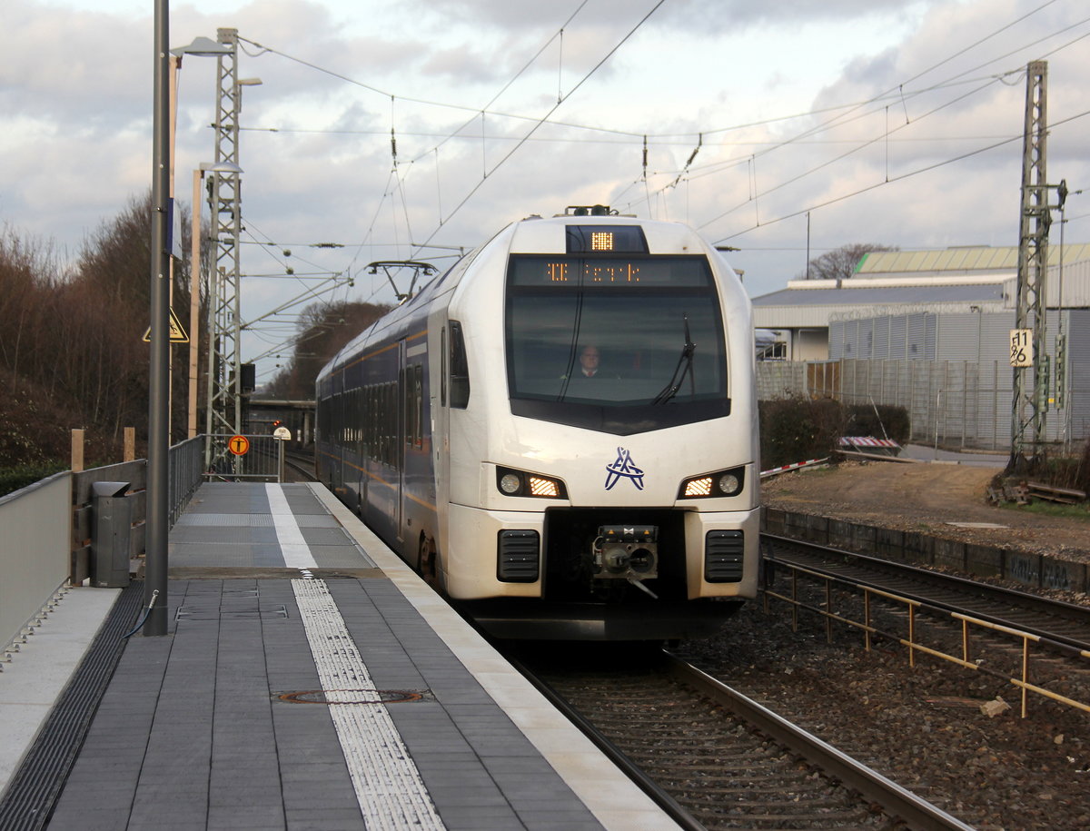 Zwei Euregiobahn (RB20) aus Alsdorf-Annapark nach Langerwehe,Stolberg-Altstadt und kommen die Kohlscheider-Rampe hoch aus Richtung Herzogenrath und halten in Kohlscheid und fuhren in Richtung Richterich,Laurensberg,Aachen-West,Aachen-Schanz,Aachen-Hbf.