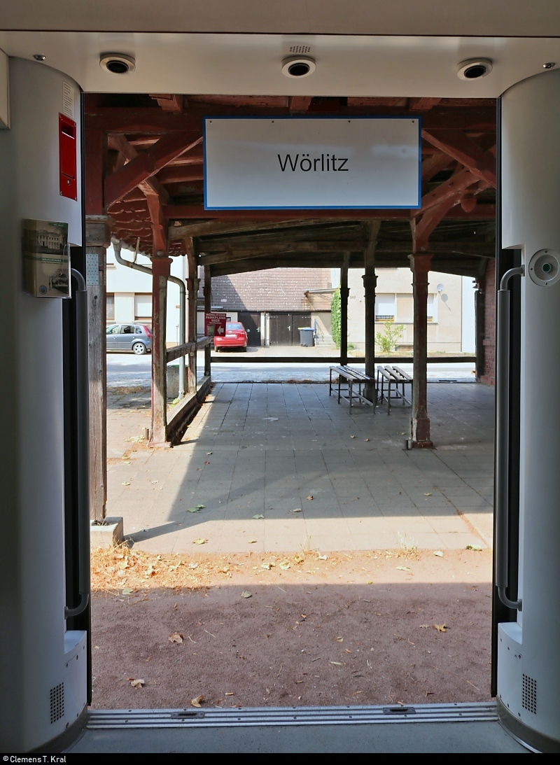 Herzlich willkommen im Bahnhof Wörlitz! Aufgenommen in 670 003-2 "Fürstin Louise" der Dessauer Verkehrs- und Eisenbahngesellschaft (DVE) als DWE75711 nach Dessau Hbf. [1.8.2018 | 14:58 Uhr]