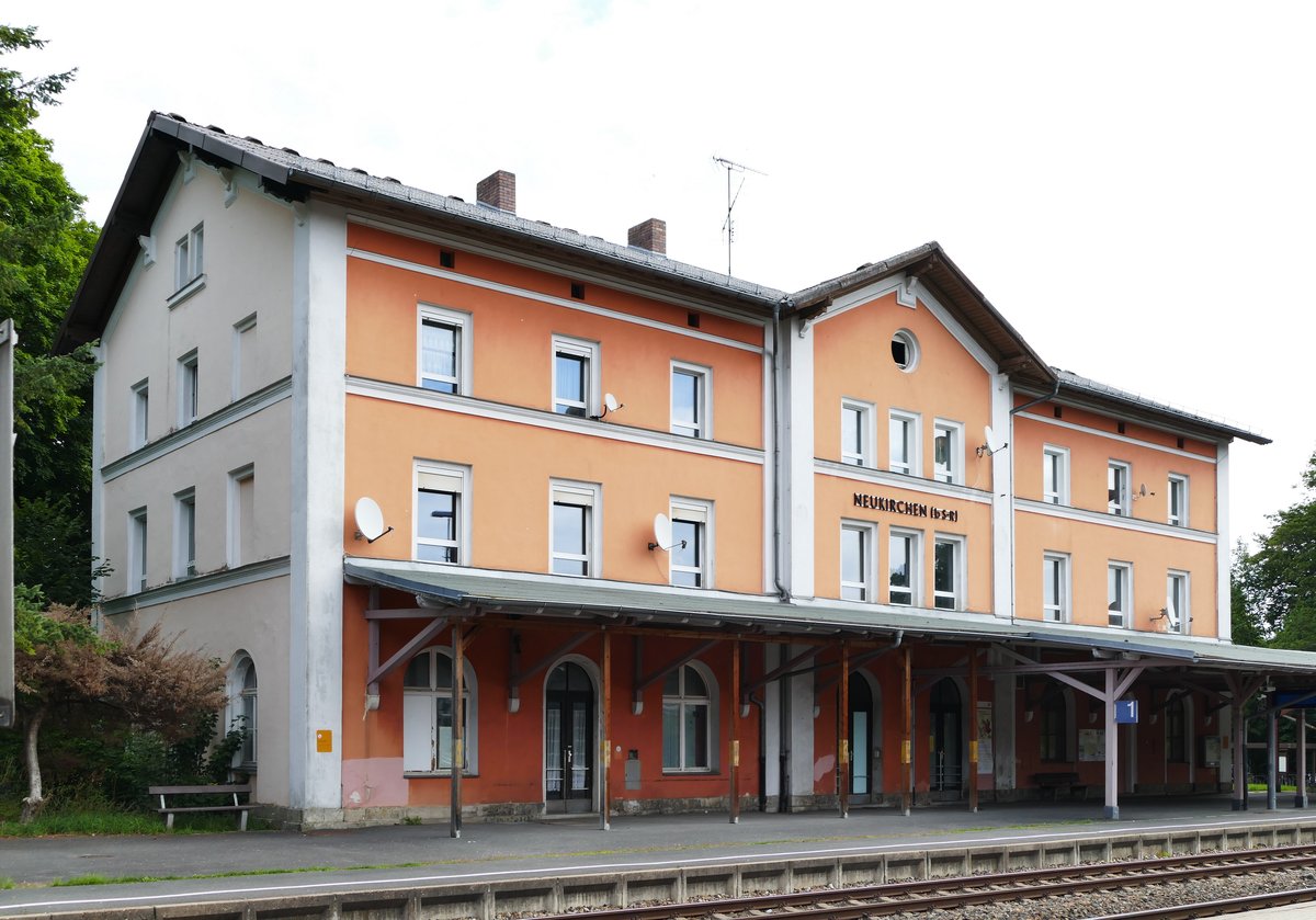 17.07.2017, Bahnhof Neukirchen bei Sulzbach-Rosenberg an der Strecke Hersbruck - Schwandorf, während eines kurzen Halts meines Zuges fotografiert.
