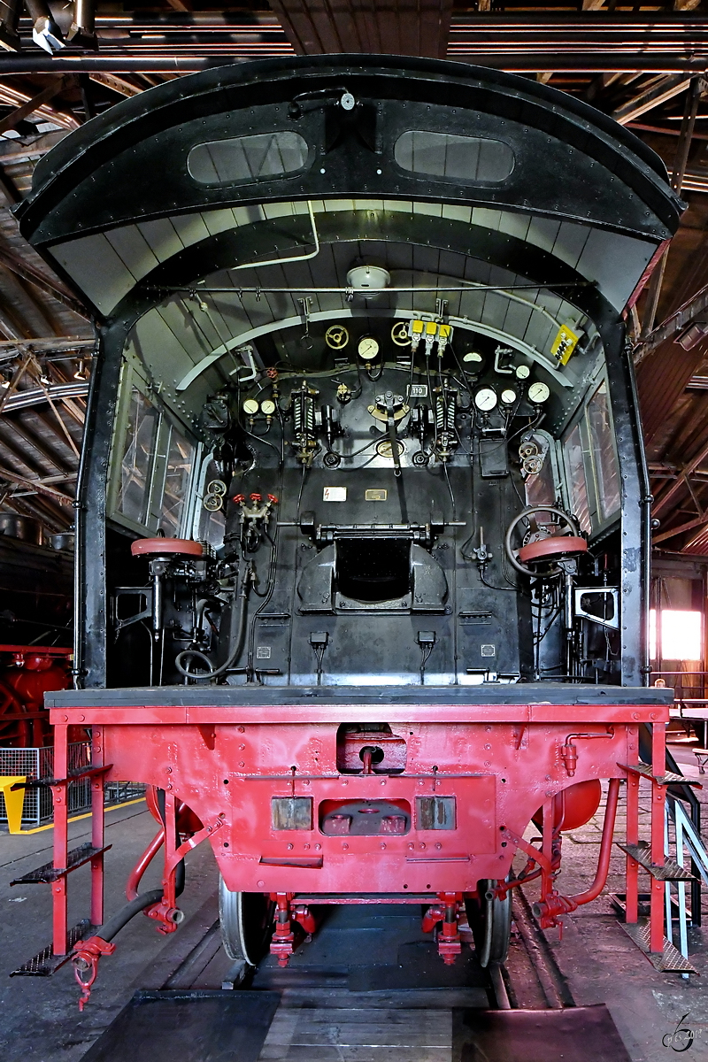 Der fehlende Schlepptender erlaubt einen freien Blick auf den Führerstand der Dampflokomotive 39 230. (Dampflokomotiv-Museum Neuenmarkt-Wirsberg, Juni 2019)