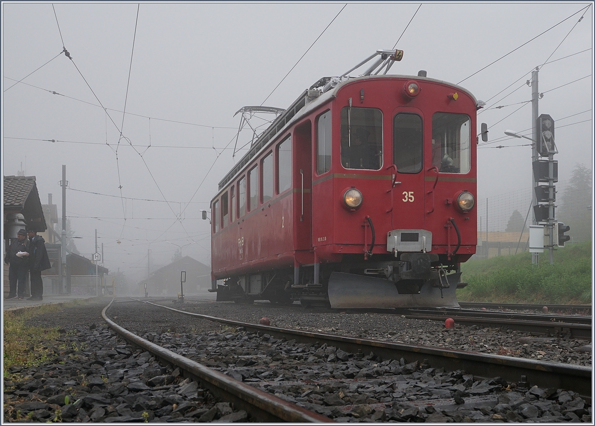 Der RhB Bernina-Bahn ABe 4/4 I N° 35 wartet in Blonay auf die Rückfahrt nach Chaulin.