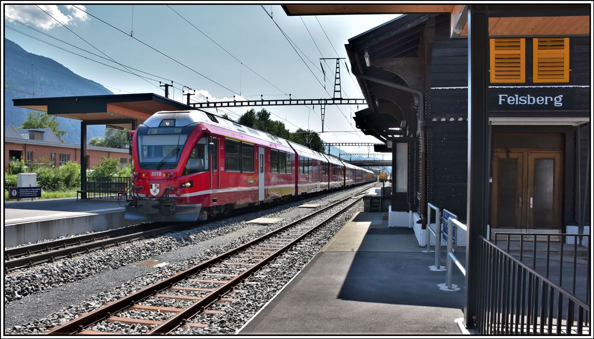 IR1148 aus St.Moritz mit ABe 8/12 3510 fährt durch Felsberg. (10.07.2019)
