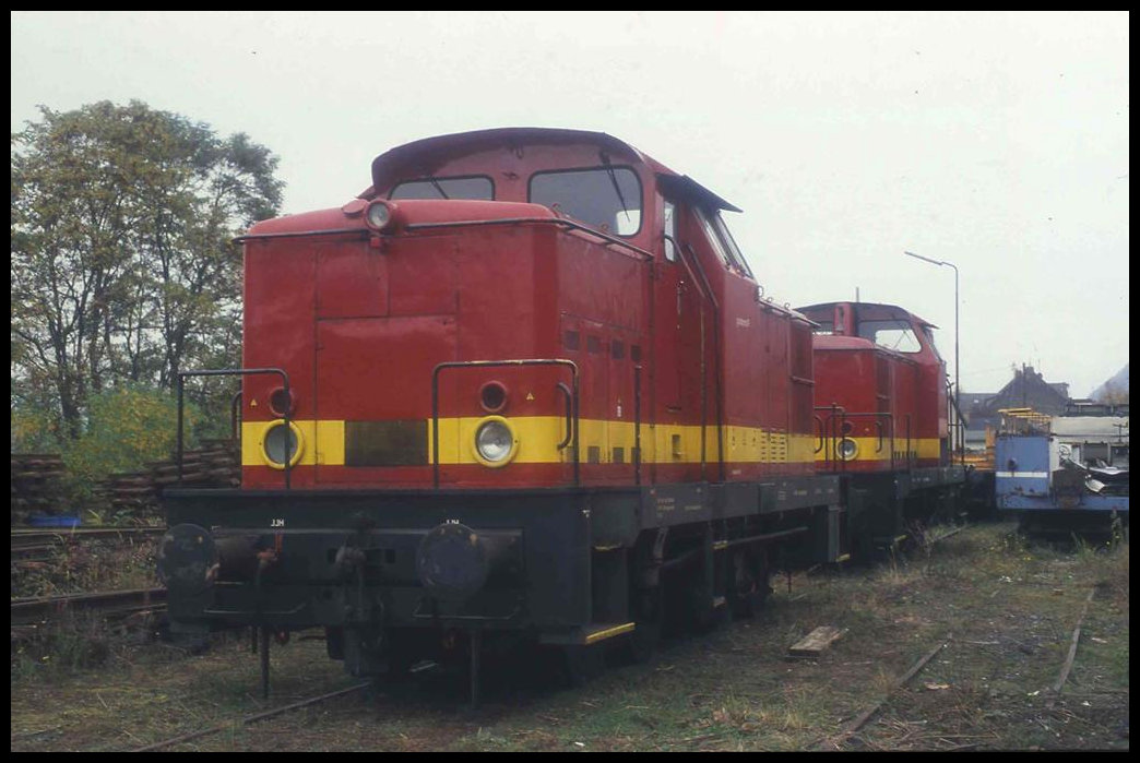 Zwei ex DB V 60 standen am 1.11.2004 im Hafen Brohl der Brohltalbahn. Vorn ist die 360577 zu sehen, die nunmehr von Gleiskraft eingesetzt wird.