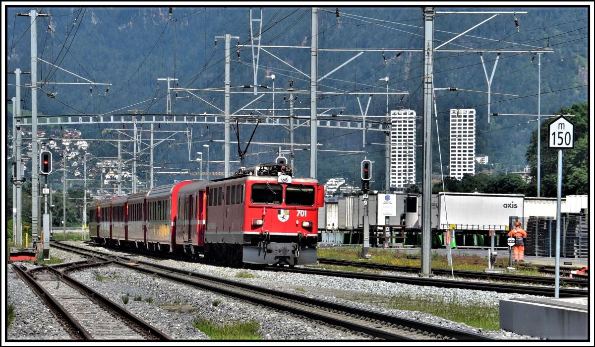 RE1753 nach Disentis wird heute wieder einmal von einer Ge 6/6 II gezogen, in diesem Fall 701 "Raetia". (10.07.2019)