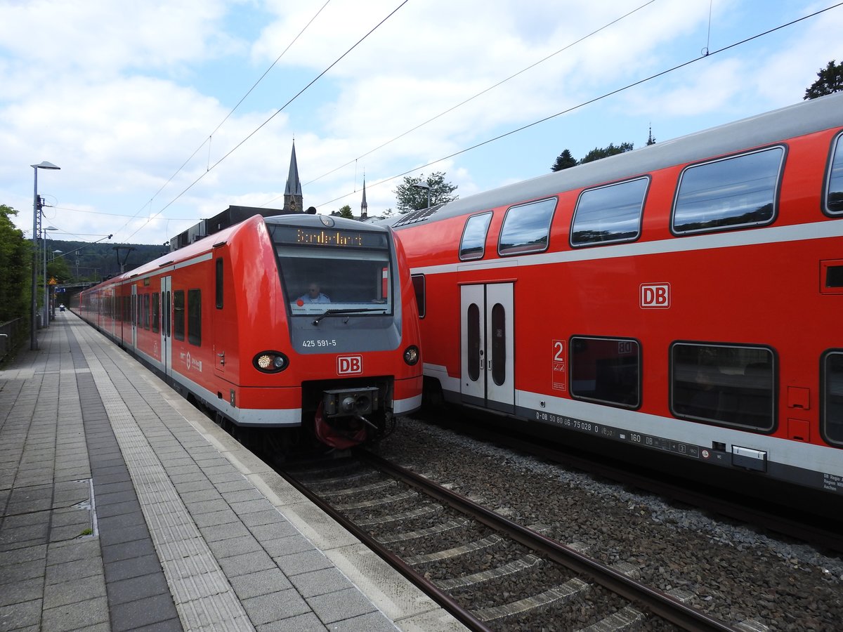 RHEIN-SIEG-EXPRESS NEBEN S-BAHN 425 591-5 IM BAHNHOF KIRCHEN/SIEG