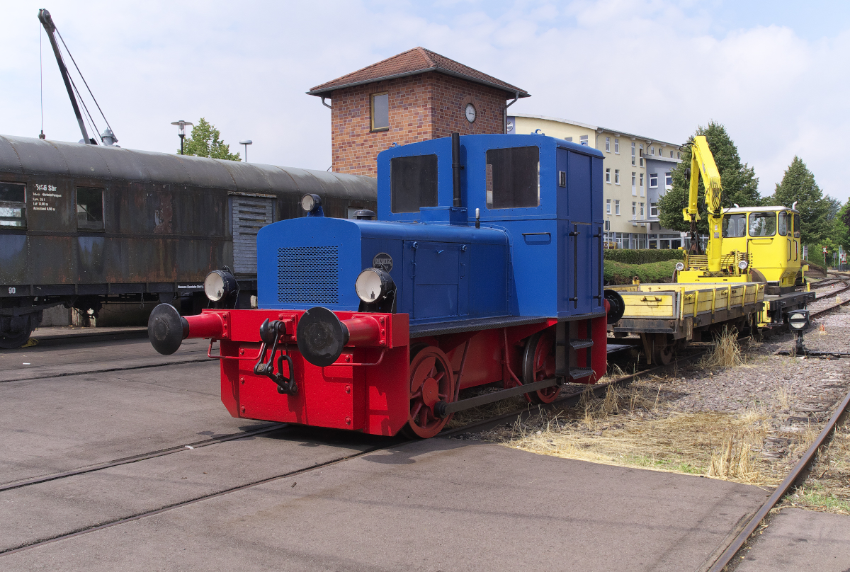 Die 1951 von Orenstein & Koppel gebaute Schmalspur-Diesellokomotive "25 118", Typ MV4a wurde 1968 auf Normalspur umgerüstet. (Dampflokomotiv-Museum Neuenmarkt-Wirsberg, Juni 2019)