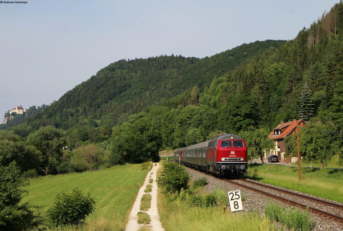 Im Oberen Donautal unterhalb von Schloss Werenwag erreicht 612 139 als RE 22317, Donaueschingen - Ulm, den nächsten Halt, den Bahnhof von Hausen im Tal (31.05.2019).