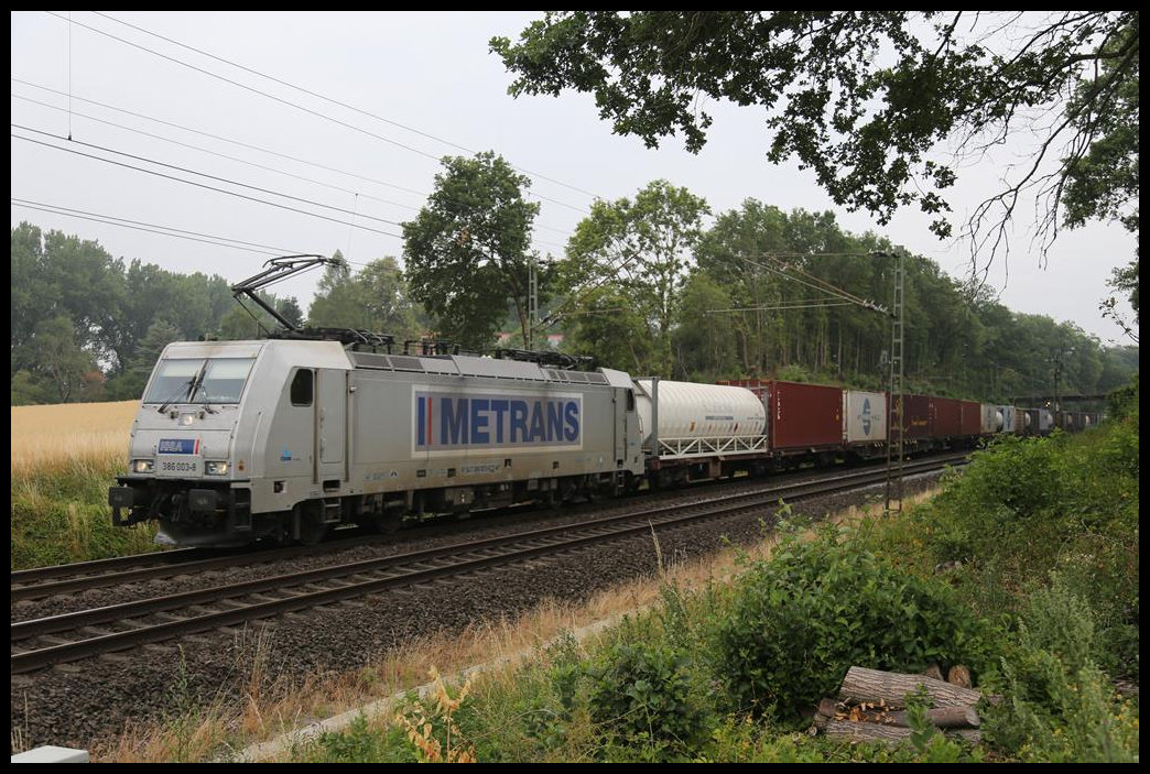186 295-2 von Lineas/Railpool kommt als Umleiter mit einem gemischten Güterzug aus Köln-Gremberg(D) nach Antwerpen-Noord(B) und fährt durch Kohlscheid aus Richtung Herzogenrath und fährt die Kohlscheider-Rampe hoch nach Aachen-West. Aufgenommen von Bahnsteig 1 in Kohlscheid. Bei Sommerwetter am Nachmittag vom 7.7.2019.