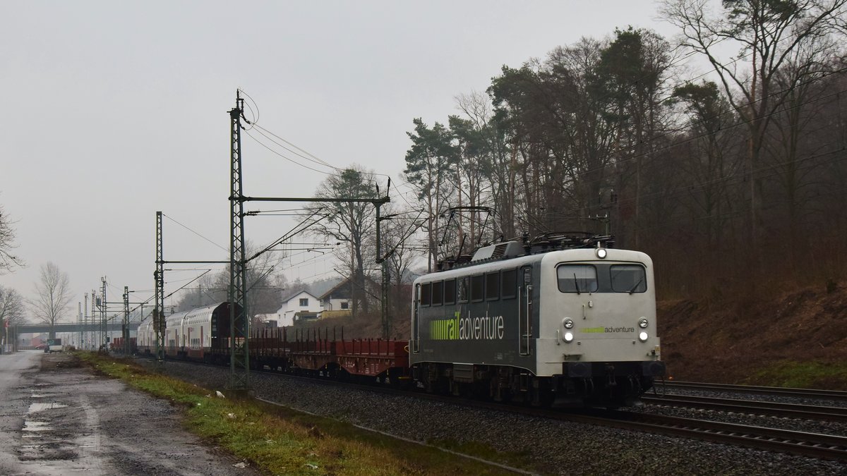 Mobile Weichenbearbeitung in BüG-Qualität.... Der Drehhobel D-HOB 2500 IV (D-HOB 4.0) der Schweerbau ist am 07.07.2019 beim ICE-Bahnhof Montabaur abgestellt. Die Einheit besteht aus dem Steuerwagen (Schweres Nebenfahrzeug-Nr. D-SBAU 99 80 9580 003-8) einem ursprünglichen GAF 100 R welches keinen eigenen Antrieb mehr hat, dem Technologieträger D-HOB 2500 IV bzw. D-HOB 4.0 (Drehhobel) Schweres Nebenfahrzeug-Nr. D-SBAU 99 80 9427 020-9) und dem Spänetransportwagen STW 01 Schweres Nebenfahrzeug-Nr. D-SBAU 99 80 9552 100-6. Zudem war noch die LDS 293 511-2 und der 27 80 3302 030-8 D-WSG der Gattung Ks mit aufgesetzten Werkstatt- und Aufenthaltscontainer dort abgestellt. Die Technologie Drehhobel vereint sowohl die Vorzüge des Fräsens und des Hobelns und verringert die Nachteile der einzelnen Verfahren. Mit der Maschine ist ein computergesteuertes Drehhobeln ohne Staub- und Funkenbildung möglich. Dabei können sowohl oberflächennahe als auch tieferliegende Schienenfehler behoben werden. Charakteristisch für die neue Technologie sind die sich drehenden, einzeln positionierbaren Werkzeuge. Weiterhin können die Zielprofile für jede Schiene separat auch während des Drehhobelprozesses angepasst werden. In dem Drehhobelaggregat sind 32 Kassetten mit je sieben geraden und einer bogenförmigen Hobelplatte angebracht, die in ihrer Gesamtheit die Soll-Kontur des Schienenkopfprofils zeigen. Durch die neue Technologie wird erstmalig auch eine nahezu komplette maschinelle Bearbeitung von Weichen ermöglicht. Bei einer Arbeitsgeschwindigkeit von 300 bis 1.500 m/h werden Späne direkt am Drehhobel abgesaugt und in einen Späne-Sammelbehälter geleitet. Wofür Drehhobelprozess: Beseitigung von Rollkontaktermüdungsfehlern (z. B. head checks, squats); Beseitigung periodischer Schienenkopflängsfehler (z. B. Rilfel, Schlupfwellen), sowie Schienenkopfquerprofilfehler (z.B. flachgefahrene und übergratete Schienen); Schienenbearbeitung aus akustischen Gründen (BüG Qualität auch in Weichen); Neuschienenbearbeitung; Beseitigung von Fahrflächenbeschädigungen (z.B. Schottereinfahrunge und Kugeleindrücke) ~~~ Bearbeitung von Schienen in Tunneln, auf Brücken, in Gleisen mit Stromführungen; Keine Funken, kein Staub, kein Ausbau von Gleisschaltmitteln erforderlich. Der Drehhobel D-HOB 2500 ist ein auf zwei 2-achsigen Drehgestellen laufendes Fahrzeug, das bewusst so ausgelegt wurde, dass ein Einsatz sowohl auf Vollbahnen als auch in verschiedenen Metro-Netzen, z.B. Paris, London, möglich ist. Im Bereich der Deutschen Bahn dürfen Strecken mit einer zugelassen Höchstgeschwindigkeit bis 300 km/h bearbeitet werden. Die Maschine besitzt einen eigenen Arbeitsantrieb mit einer Höchstgeschwindigkeit von 15 km/h und die Überführung kann mit einer Höchstgeschwindigkeit von max. 100 km/h erfolgen. Die Rüstzeit von Transport- in Arbeitsstellung (und umgekehrt) dauert nur drei Minuten, da die Aggregate lediglich nach unten abgesenkt und anschließend nach außen gefahren werden bevor sie auf dem Schienenkopf aufsetzen. TECHNISCHE DATEN (gesamt Einheit D-HOB 2500 IV): Spurweite: 1.435 mm Anzahl der Achsen: 8 Länge über Puffer: 30.148 mm Höhe: 3.640 mm Gewicht: 81 t Radsatzlast: max. 14 t Motorleistung: 354 kW Höchstgeschwindigkeit (eigen): 15 km/h (Arbeit) Höchstgeschwindigkeit (geschleppt): 100 km/h Dieseltank: 1.500 l Arbeitsverfahren: Computergesteuertes Drehhobeln und oszillierendes Schleifen, absolut staub- und funkenfrei. Materialabtrag: 0,2 bis 1,5 mm / Überfahrt Anzahl der Drehhobelaggregate: 2 Einheiten a Ø 1.400 mm Späneaufnahme: 22 m³ (Spänecontainer) Schleifaggregate: 1 elektrisches Aggregat mit 12 Schleifsteinen Wassertank: 2,5 m³ Arbeitsgeschwindigkeit: 300 bis 900 m/h Messsysteme: Wirbelstromprüfsystem Max. Streckenneigung: 70‰ Bremse: KE-GP Zugelassen für Streckenklasse A oder höher.