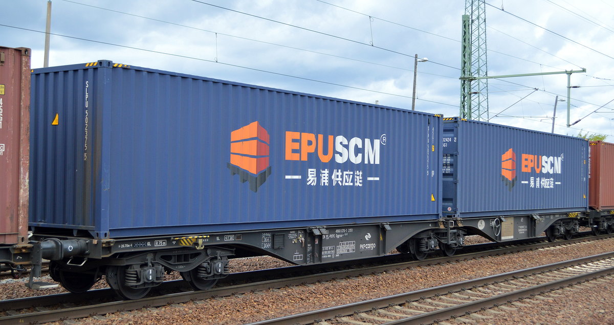 Gelenk-Containertragwagen der polnische PKP Cargo mit der Nr. 31 RIV 51 PL-PKPC 4960 076-1 Sggrss-x 629Z am 08.07.19 Bahnhof Flughafen Berlin-Schönefeld.