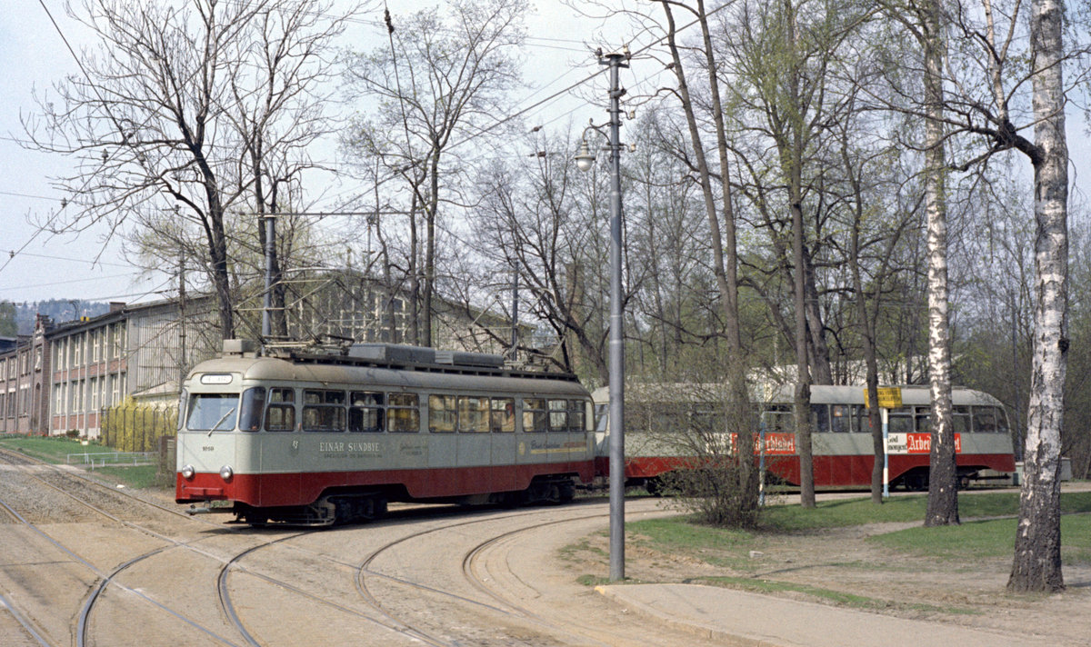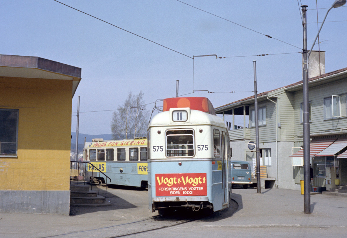 Oslo Oslo Sporveier SL 11 (Høka Bw 575 + SM53 229) Kjelsås (Endstation) am 8. Mai 1971. - Scan eines Farbnegativs. Film: Kodak Kodacolor X. Kamera: Minolta SRT-101.