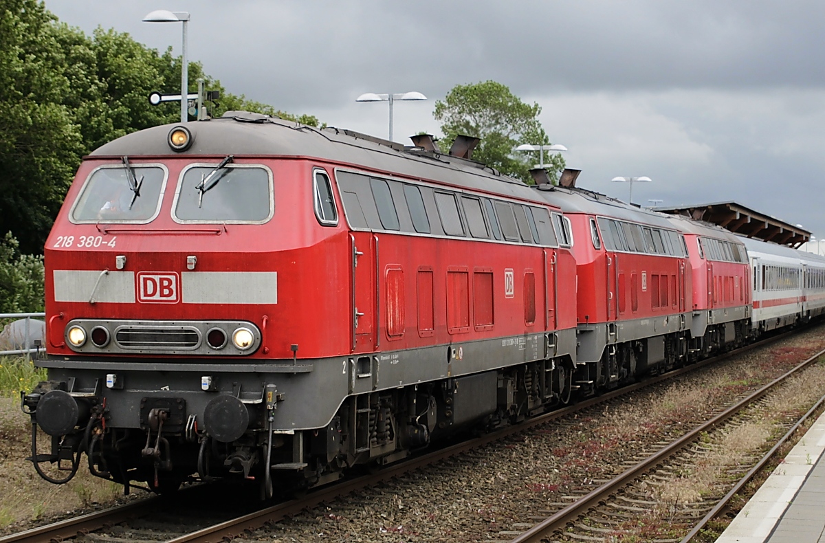 Am 11.07.2019 sind 218 307-7, 218 380-4 und 218 402-6 mit dem IC 2311 in Itzehoe angekommen. Die Loks kuppeln ab, denn ab hier geht es elektrisch weiter.