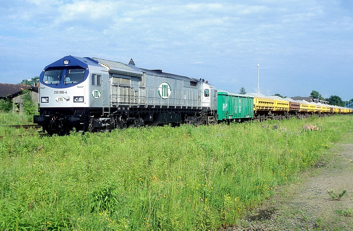 1216 960 am 17.07.2019 mit leeren Flachwagen bei Friedland.