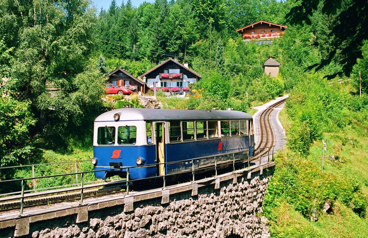 26.08.2000, Österreich, Schafbergbahn, Triebwagen 5099 001-9 bei der Talfahrt