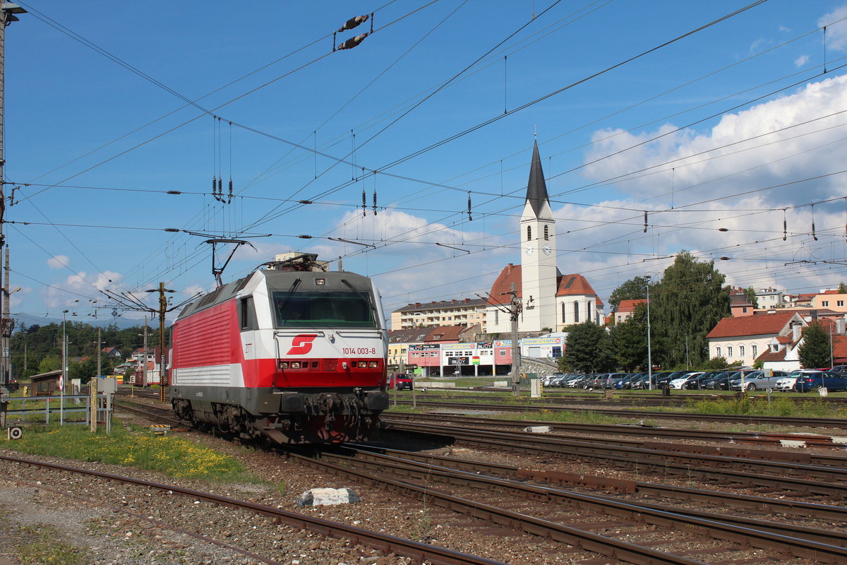 Am 16.7.2019 brachte die 1014 003 einen "Schlieren"-Wagen von Strasshof nach Knittelfeld der für Messfahrten ausgestattet wird.