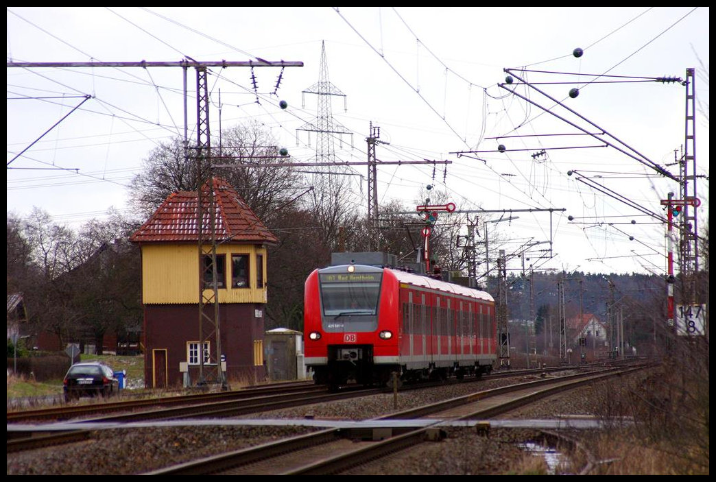 DB ET 425581 passiert hier am 25.1.2005 auf der Fahrt nach Bad Bentheim das östliche Stellwerk in Westerkappeln Velpe.
