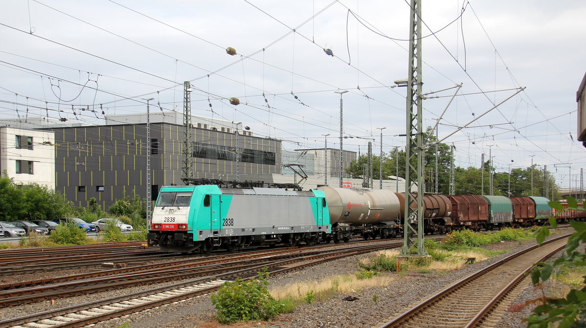 Die Cobra 2838 kommt aus Richtung Montzen/Belgien mit einem Güterzug aus Antwerpen-Noord(B) nach Köln-Gremberg(D) und fährt in Aachen-West ein.