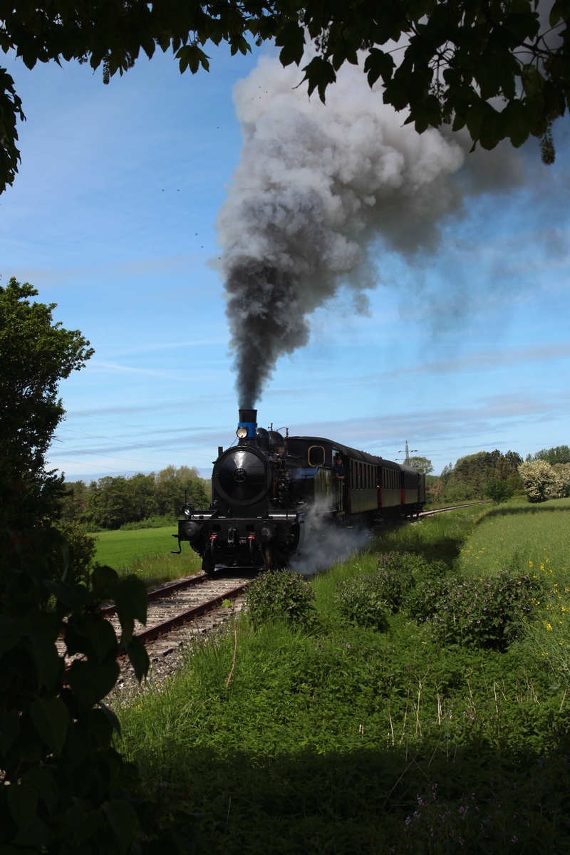 Die OHJ 38 (Henschel 1917, Fabr.-Nr. 14299) auf der Fahrt von Gørlev nach Høng am 31.05.2019.