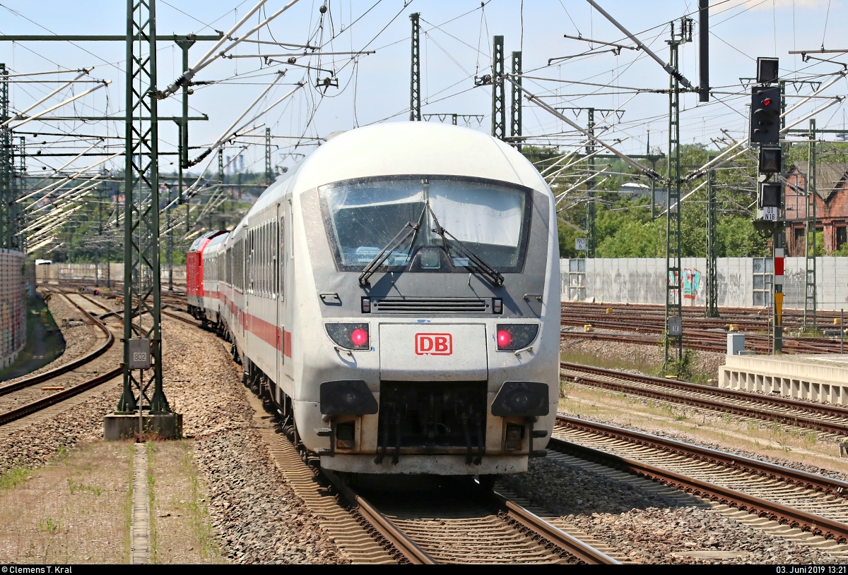 Direkt vor dem IC 2311 war am 11.07.2019 die 218 402-6 von Railsystems gekuppelt. Sie blieb im Gegensatz zu ihren beiden Schwesterlokomotiven zur Sicherung der Stromversorgung am Zug, bis sich die 101 an den Zugschluß gesetzt hatte.