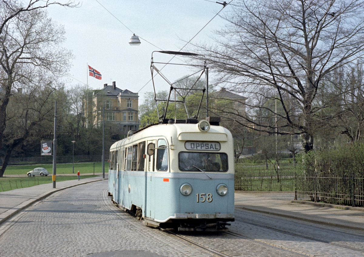 Oslo Oslo Sporveier Lilleakerbanen SL 9 (Tw "Gullfisk" E 158) Drammensveien am 8. Mai 1971. - Scan eines Farbnegativs. Film: Kodak Kodacolor X. Kamera: Minolta SRT-101.