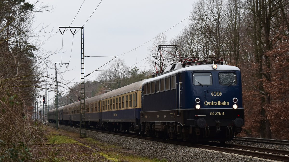 110 278 zieht einen Leerzug von Hofheim nach Frankfurt Süd am Abzweig Forsthaus vorbei. Aufgenommen am 3.2.2019 10:57