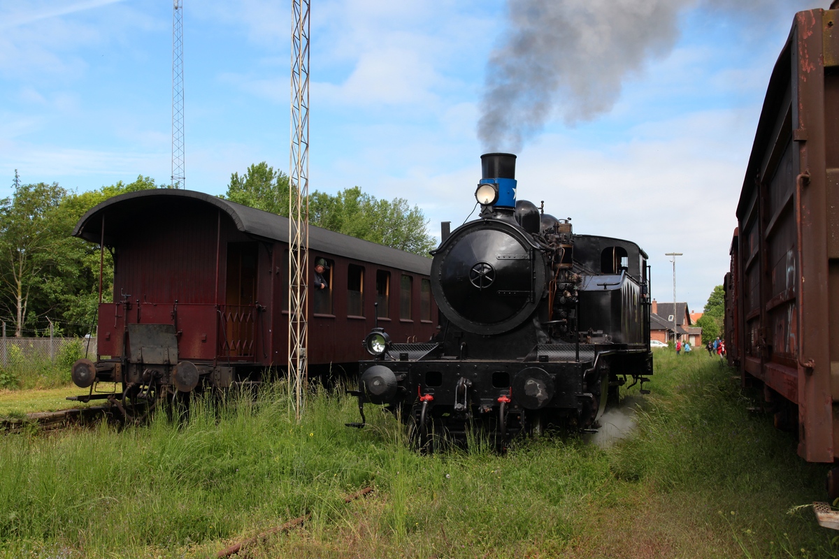 Das Umsetzen in Gørlev ist für die OHJ 38 (Henschel 1917, Fabr.-Nr. 14299) wie ein Ausflug ins Grüne. Das Gleis machte den Eindruck als wäre dort in diesem Jahr noch nichts entlanggefahren. 31.05.2019