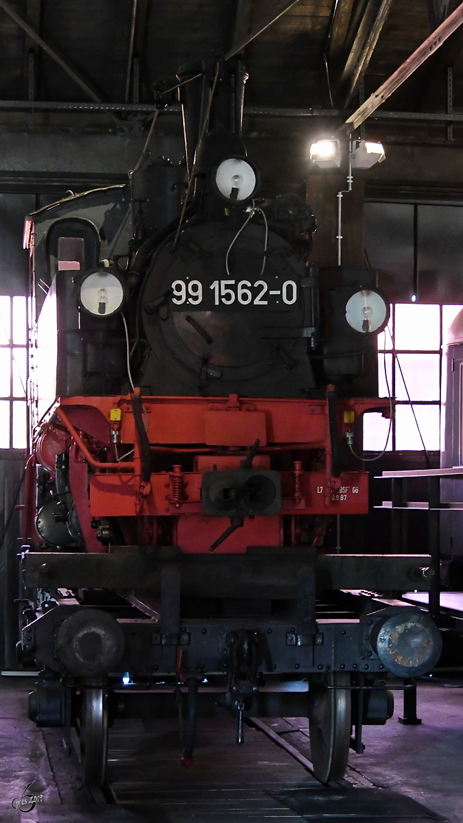 Die Dampflokomotive 99 1562-0 stammt aus dem Jahr 1909 und steht hier auf einem Transportwagen. (Deutsches Dampflokomotiv-Museum Neuenmarkt-Wirsberg, Juni 2019)