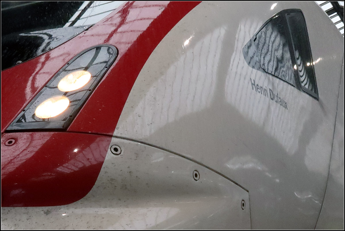 Der Triebkopf konnte durch eine kleine Lücke im Mastenwald vom Bahnsteig 3/6 aufgenommen werden.