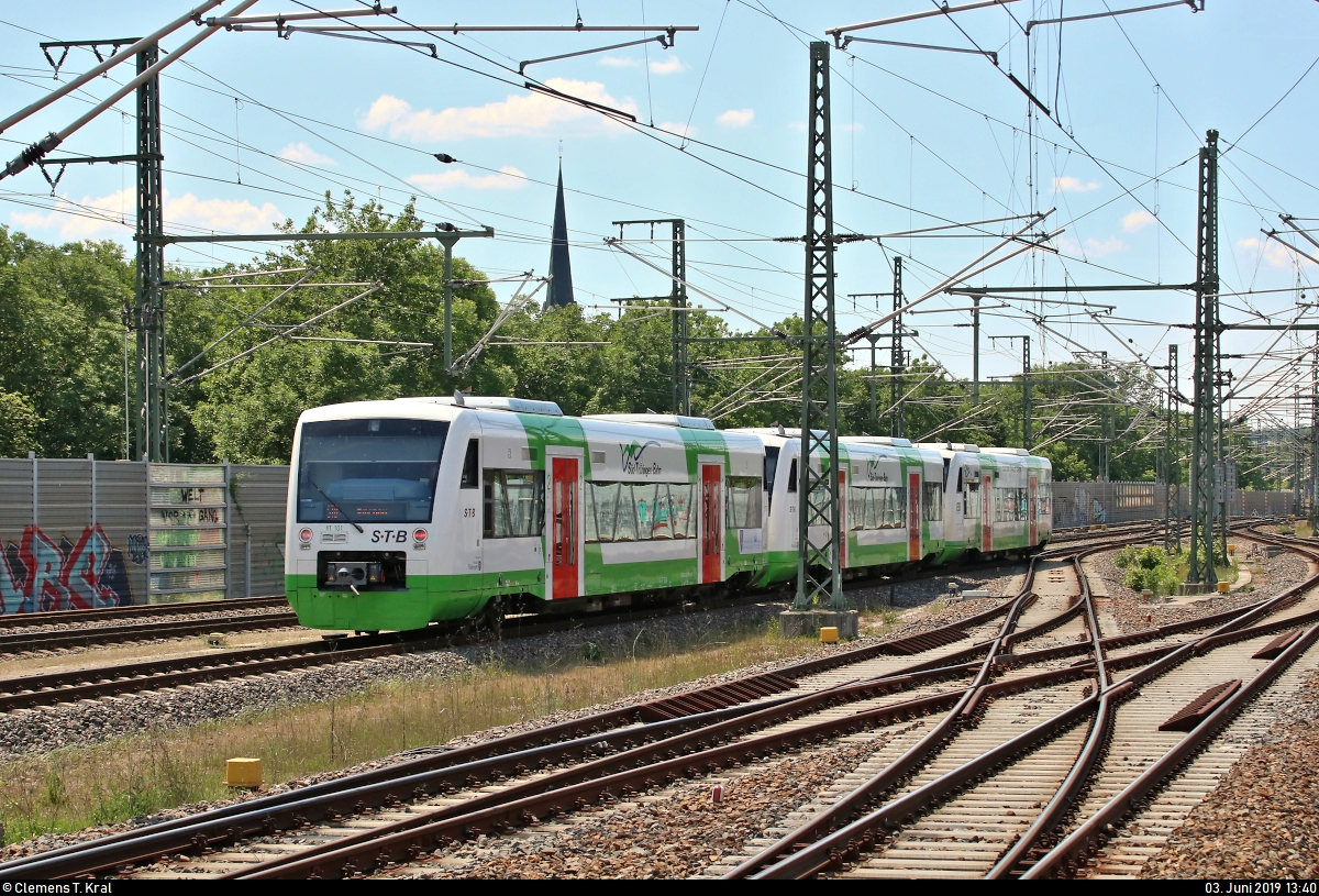 Nachschuss auf 650 501-9 "Wartburgstadt Eisenach – Reformationsstadt Europas" und 650 512-6 der Süd-Thüringen-Bahn GmbH (STB) sowie 650 411-1 der Erfurter Bahn GmbH (EB) (Stadler Regio-Shuttle RS 1) als EB 80991 (EB23) nach Saalfeld(Saale) bzw. STB 81205 (STB46) nach Ilmenau, die ihren Startbahnhof Erfurt Hbf auf Gleis 8 verlassen.