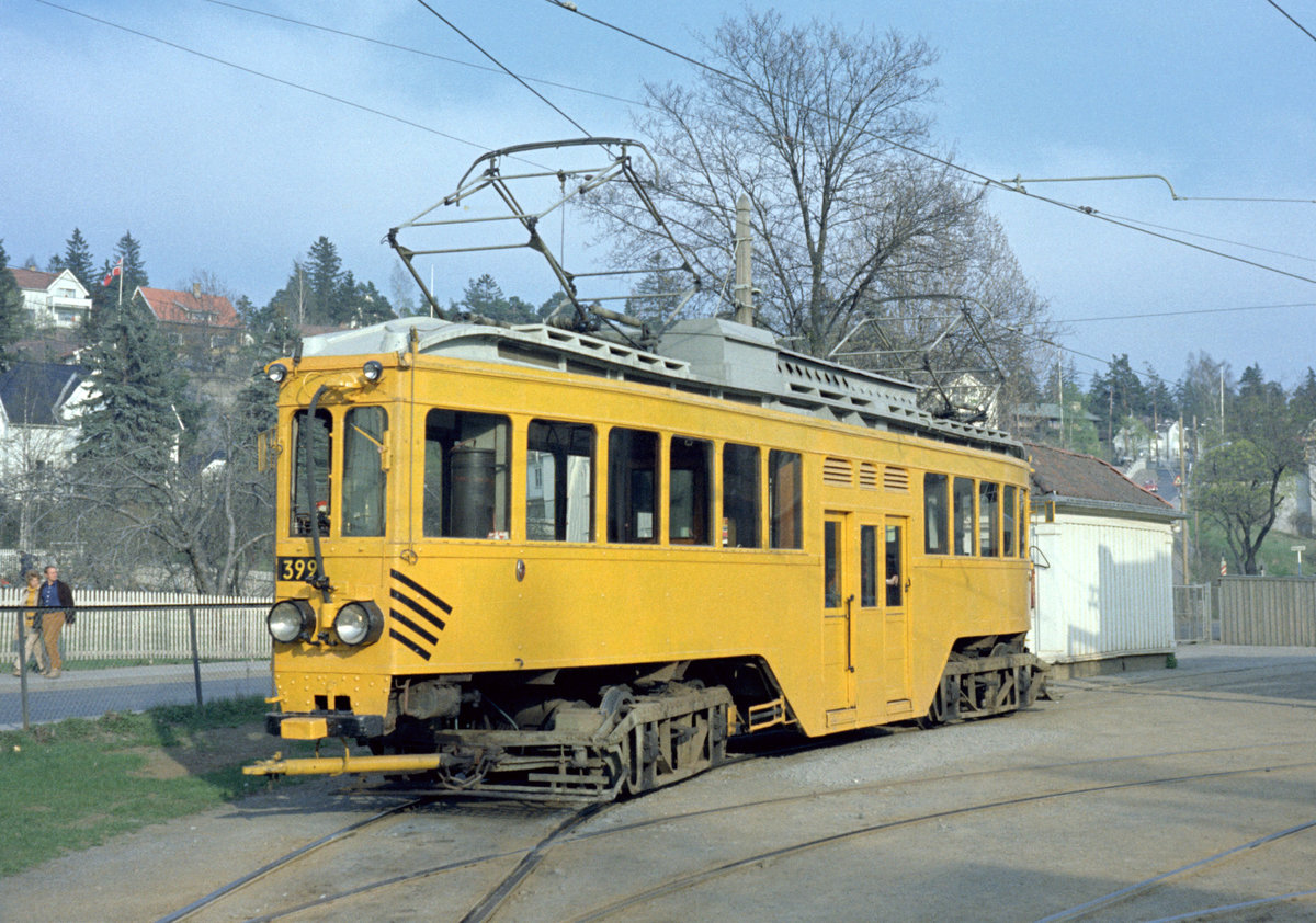 Oslo Oslo Sporveier Ekebergbanen Arbeitstriebwagen 399 Holtet am 8. Mai 1971. - Scan eines Farbnegativs. Film: Kodak Kodacolor X. Kamera: Minolta SRT-101.