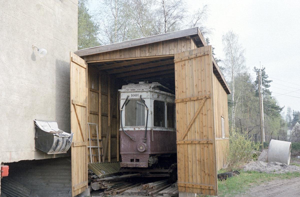 Oslo Oslo Sporveier Ekebergbanen Holtet am 8. Mai 1971: In einem Wagenschuppen steht der Tw 1001, der 1917 von Skabo mit elektrischer Ausrüstung von Siemens-Schuckert gebaut wurde. Bis 1957 war der Tw in Betrieb; in diesem Jahr wurde er abgestellt. Seit 1980 ist der Verein "Lokaltrafikkhistorisk Forening", in dessen Wagensammlung sich der Tw heute befindet, Besitzer des Fahrzeugs. - Scan eines Farbnegativs. Film: Kodak Kodacolor X. Kamera: Minolta SRT-101.
