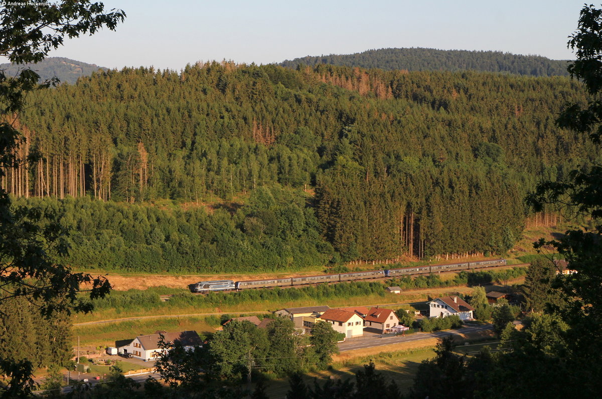 193 294 erreicht mit dem EC 177 nach Prag am 14.06.19 den Bahnhof Decin.