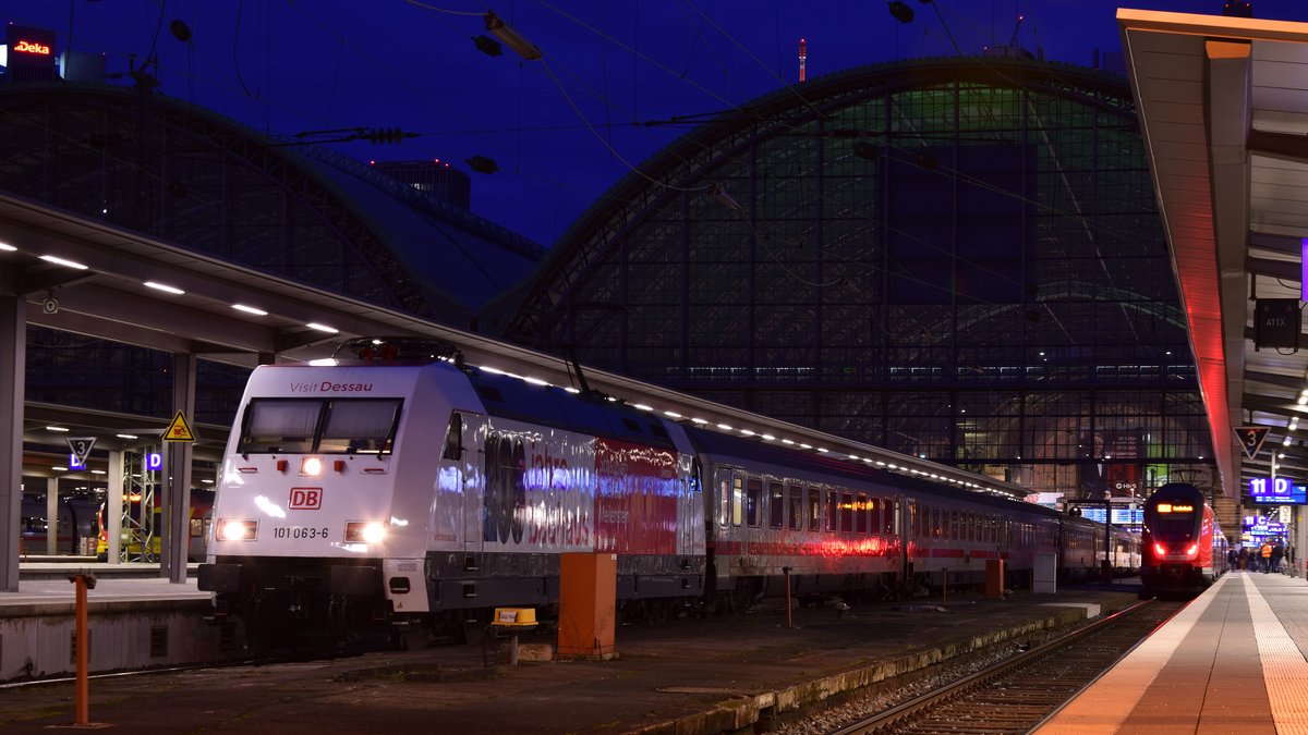 101 063 steht mit dem IC2295 nach München abfahrbereit in Frankfurt. Aufgenommenn am 3.2.2019 17:53