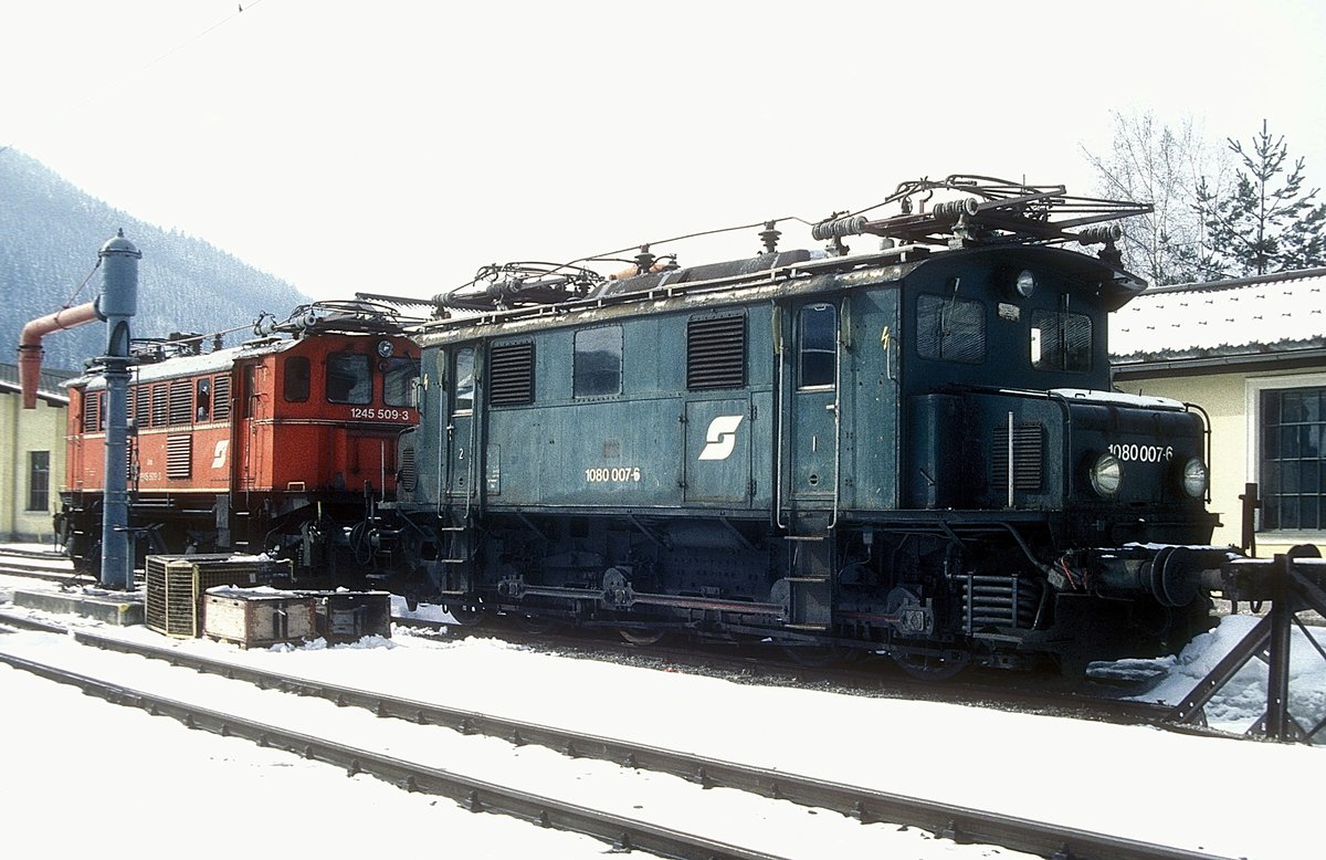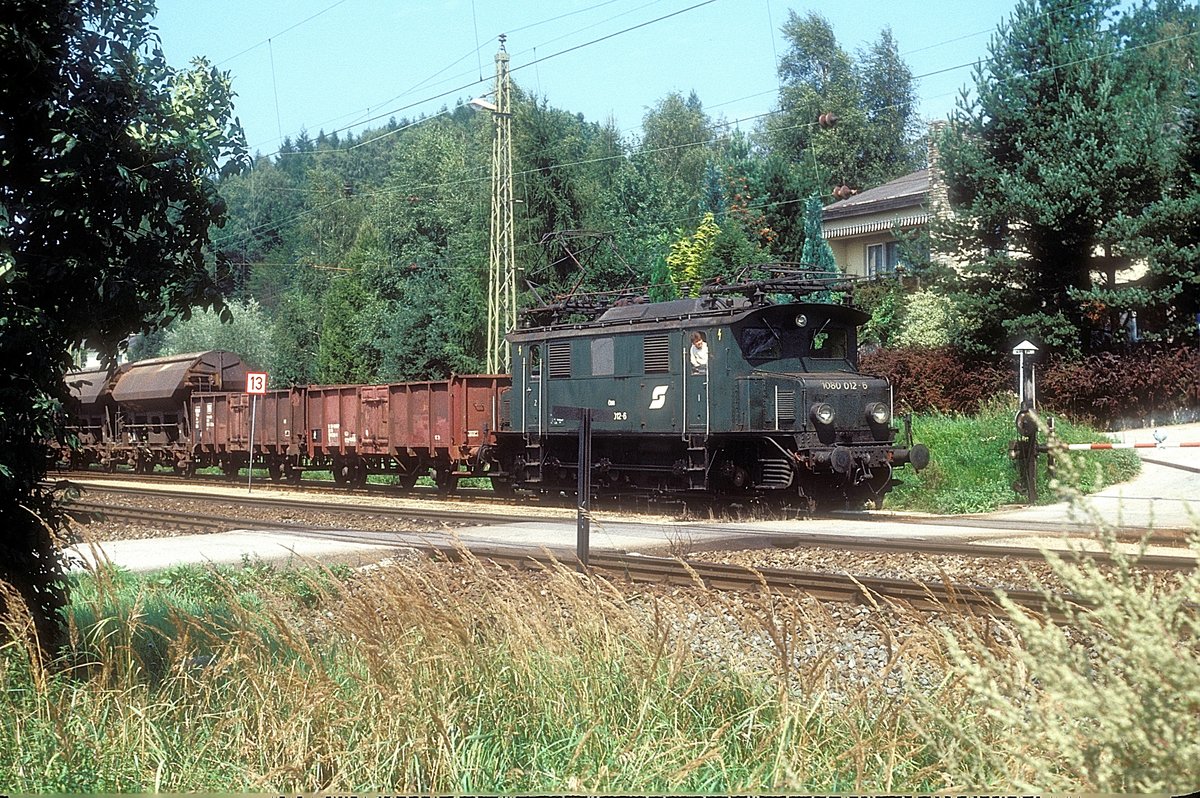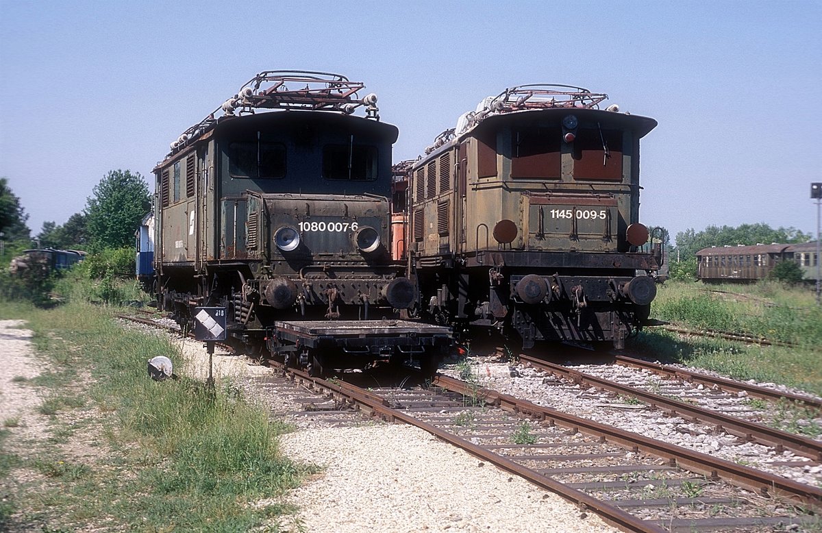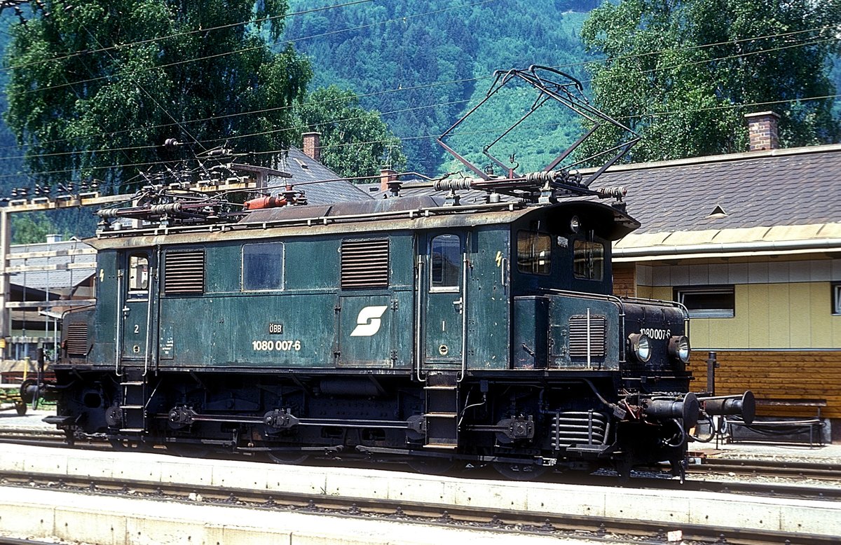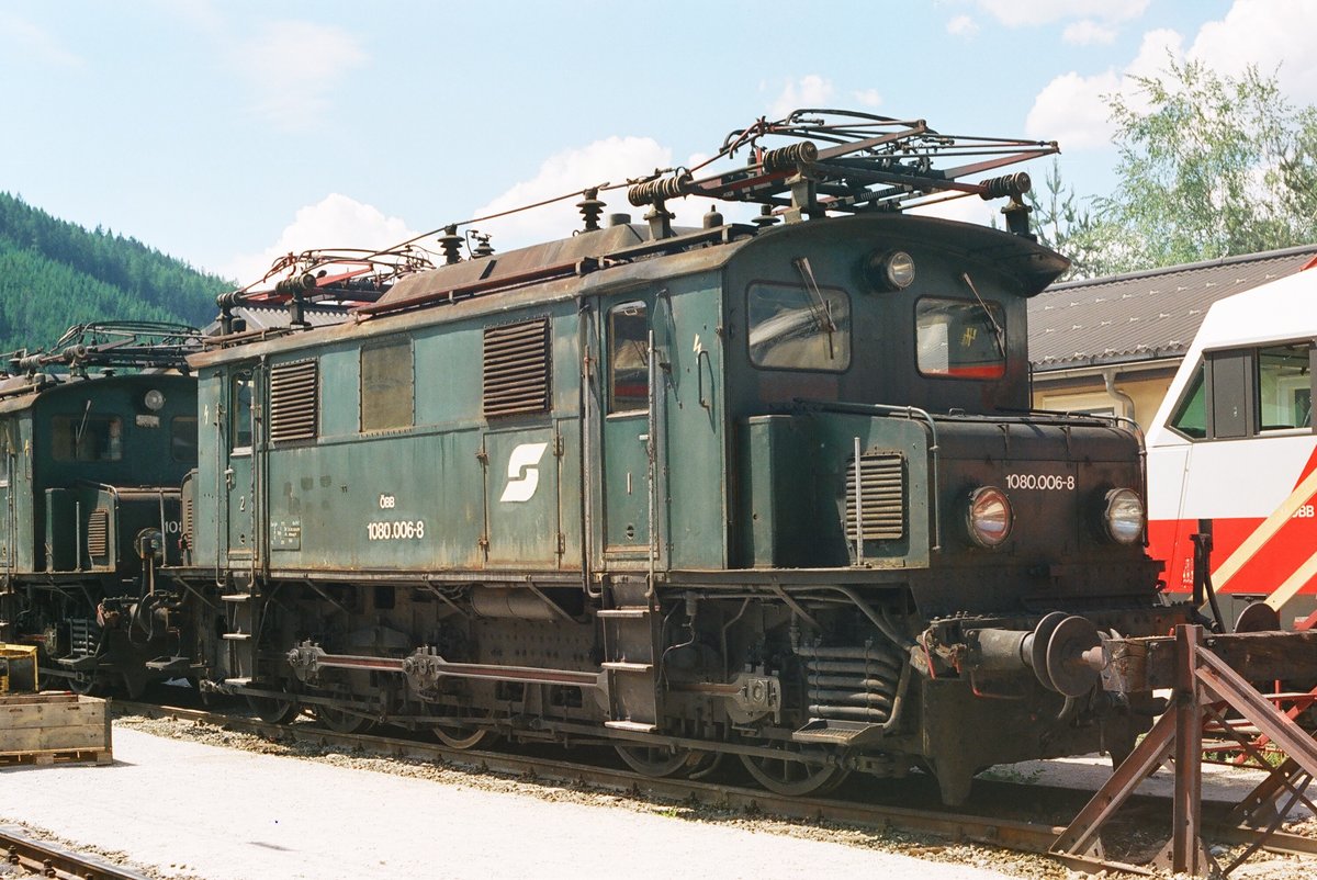 30.05.1993, Dampflokfest in Selzthal, E-Lok 1080.006-8. Die bei Krauss Linz im Jahr 1924 gebaute Lok wurde am 01.04.1993 ausgemustert. Hinter ihr verbirgt sich 1080 007.