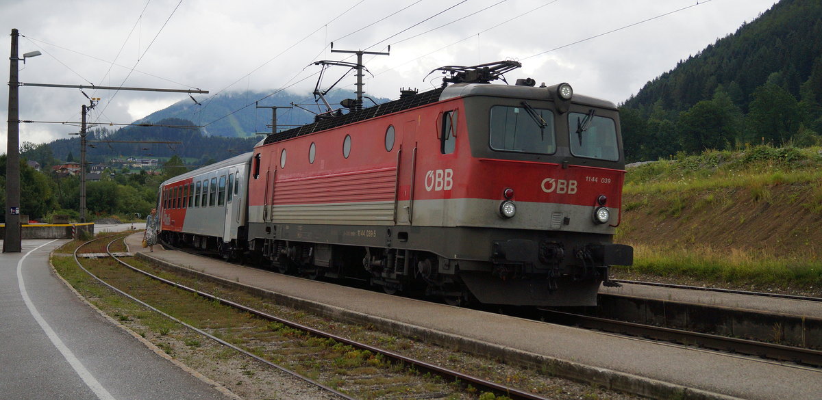 1144 039-5 erreicht mit dem REX 3908 (Selzthal - Linz Hbf) den Bahnhof Windischgarsten, 08.07.2019.