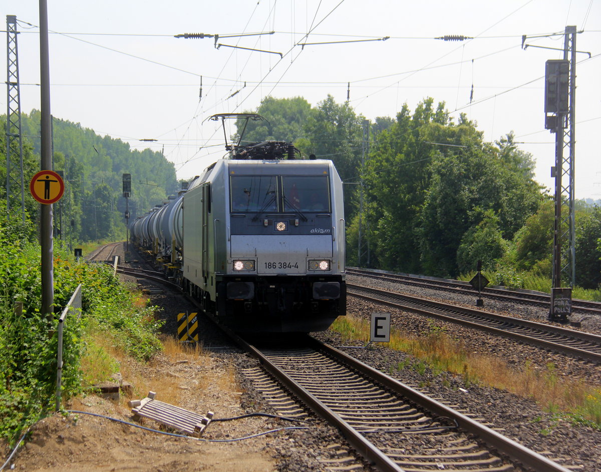 186 384-4 von Akiem/Lineas kommt durch Kohlscheid aus Richtung Aachen-West mit einem Kesselzug aus Antwerpen-Kanaaldok(B) nach Millingen-Solvay(D) Laurensberg,Richterich und fährt durch Kohlscheid in Richtung Herzogenrath,Hofstadt,Finkenrath,Rimburg,Übach-Palenberg,Zweibrüggen,Frelenberg,Geilenkirchen,Süggerath,Lindern,Brachelen,Hückelhoven-Baal,Baal,Erkelenz,Herrath,Beckrath,Wickrath,Rheydt.