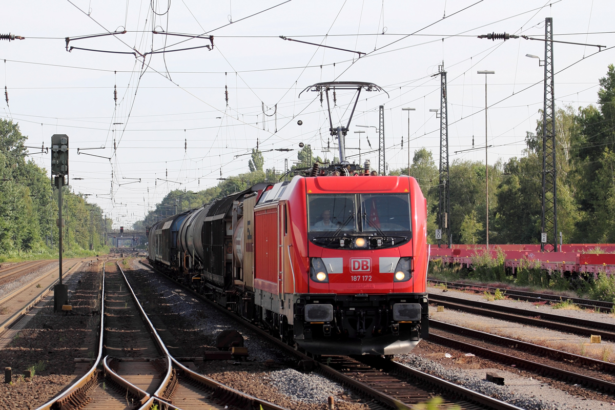 185 044-5 DB kommt als Umleiter mit einem Kesselzug aus Ludwigshafen-BASF nach Antwerpen-BASF(B) und fährt durch Kohlscheid aus Richtung Herzogenrath und fährt die Kohlscheider-Rampe hoch nach Aachen-West.