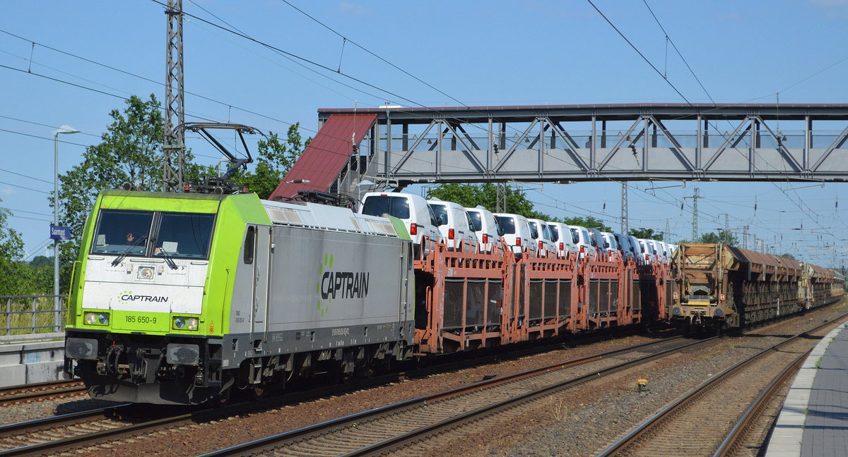 ITL - Eisenbahngesellschaft mbH mit "185 650-9" [NVR-Nummer: 91 80 6185 650-9 D-ITL] und PKW-Transportzug (VW Nutzfahrzeuge aus polnischer Produktion) am 13.06.19 Bahnhof Saarmund. Viele Grüße an den Tf. !!!!