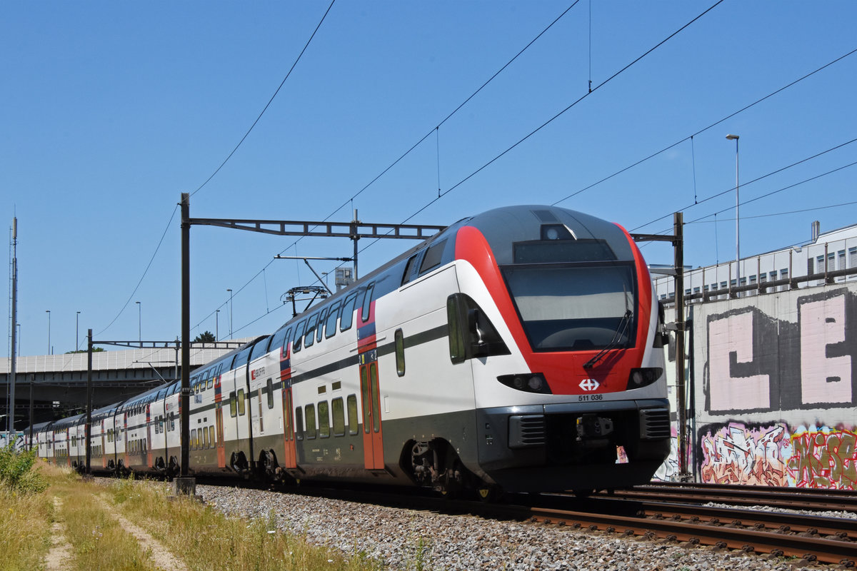 RABe 511 036 fährt Richtung Bahnhof SBB. Die Aufnahme stammt vom 10.07.2019.