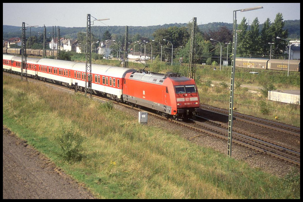 101126 kommt hier am 3.9.2004 mit einem Schlafwagen Zug durch den Bahnhof Lengerich in Richtung Münster.