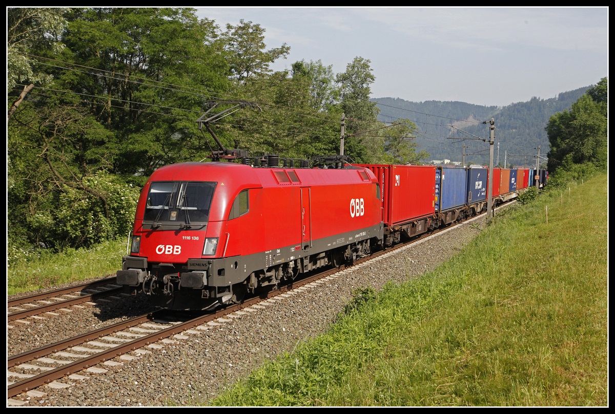 1116 153 mit Railjet in Bruck/Mur Übelstein am 13.06.2019.