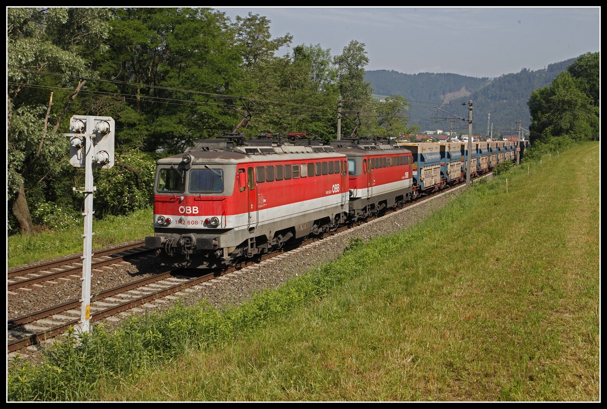 1142 608 + 1142... mit Güterzug bei Pernegg am 13.06.2019.