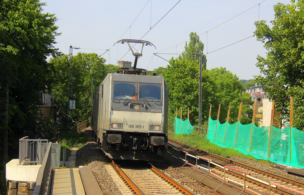 186 385-1 von Akiem/Lineas kommt aus Richtung Aachen-West mit gemischten Güterzug aus Antwerpen-Noord(B) nach Köln-Gremberg(D) und fährt durch Aachen-Schanz in Richtung Aachen-Hbf,Aachen-Rothe-Erde,Stolberg-Hbf(Rheinland)Eschweiler-Hbf,Langerwehe,Düren,Merzenich,Buir,Horrem,Kerpen-Köln-Ehrenfeld,Köln-West,Köln-Süd. Aufgenommen vom Bahnsteig von Aachen-Schanz.