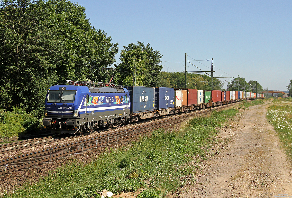 185 610 und 186 297 für RTB Cargo mit einem Containerzug bei Postbauer-Heng Richtung Nürnberg, 24.02.2019