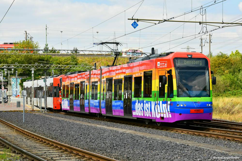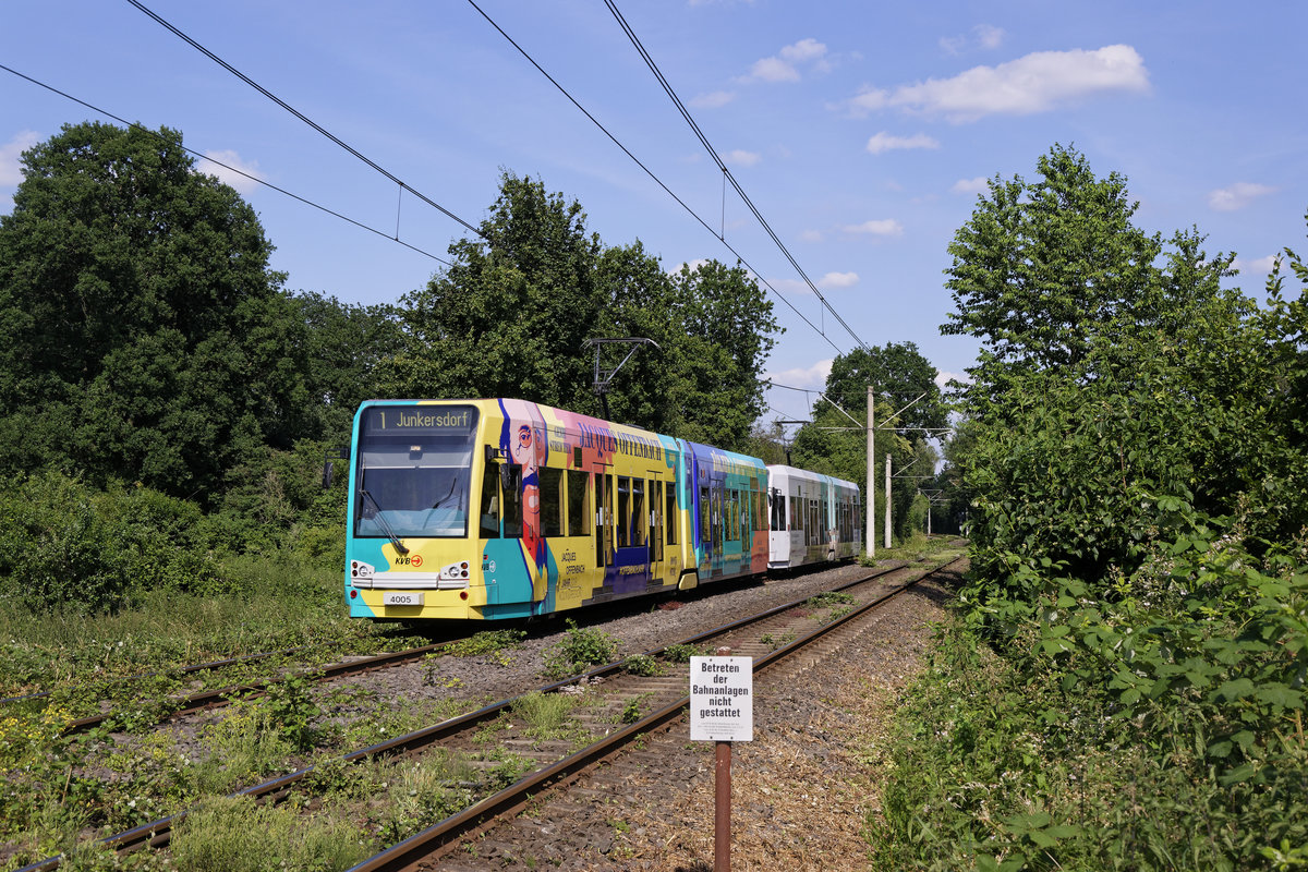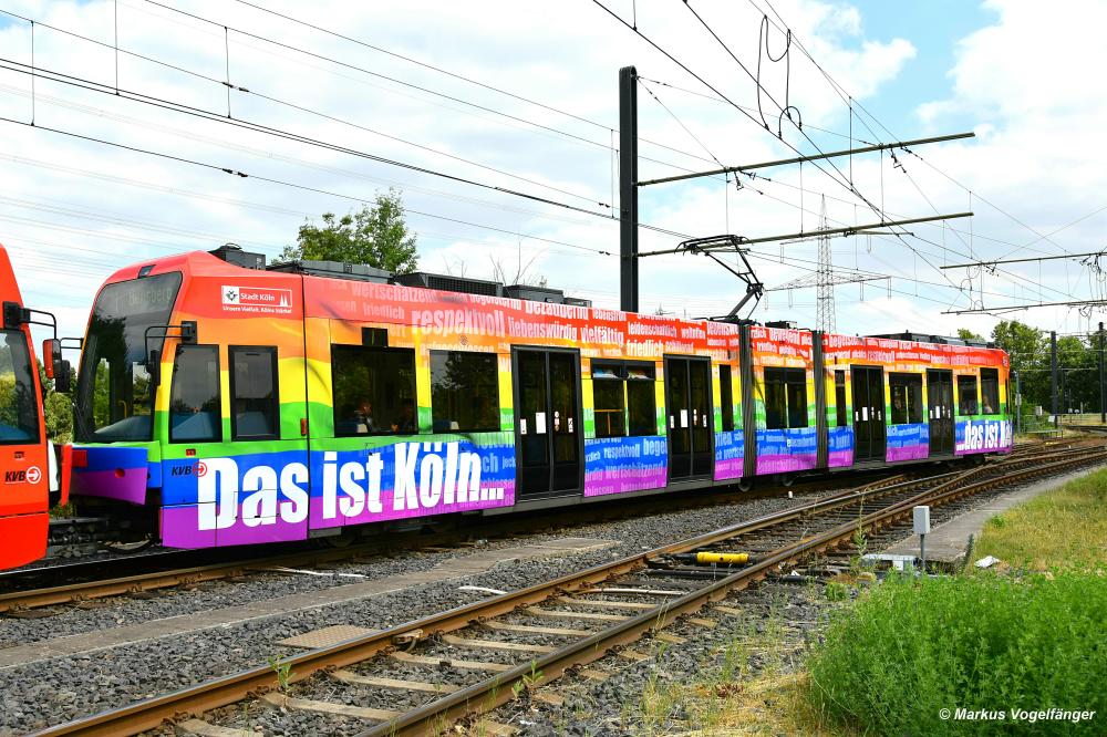 KVB 4529 und 4557 waren am Abend des 17.06.2019 auf der Autobahnbrücke in Köln-Brück stadteinwärts auf der Linie 1 unterwegs.